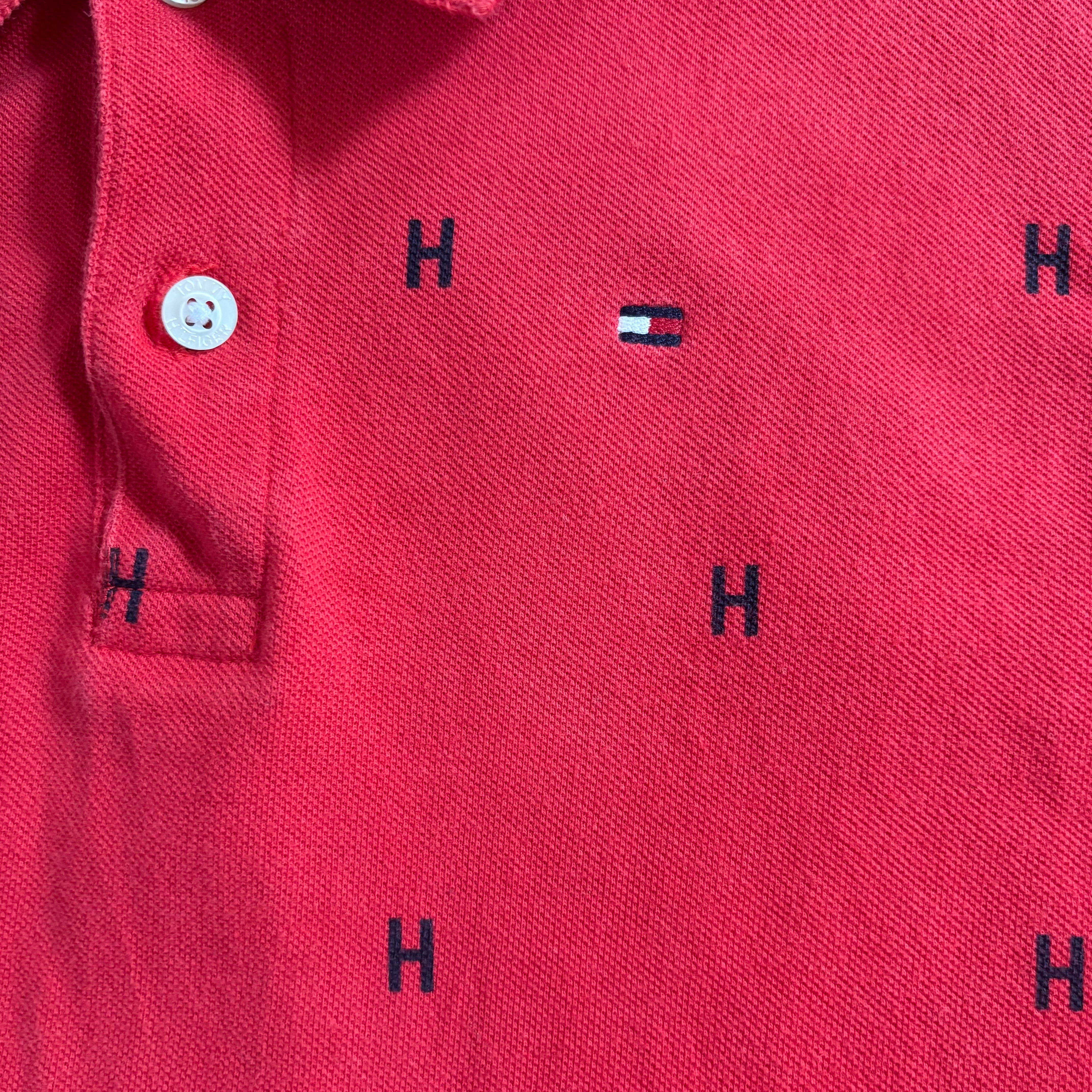 トミーヒルフィガー ポロシャツ XLサイズ 16-18 160cm レッド 総柄 US古着 キッズ古着