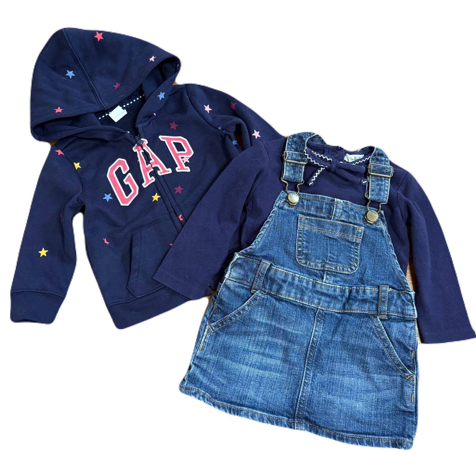 女の子 80cm コーディネートセット babyGAP アーベーベー パーカー Tシャツ サロペット ジャンパースカート 長袖 デニム 星柄 3着セット キッズ服