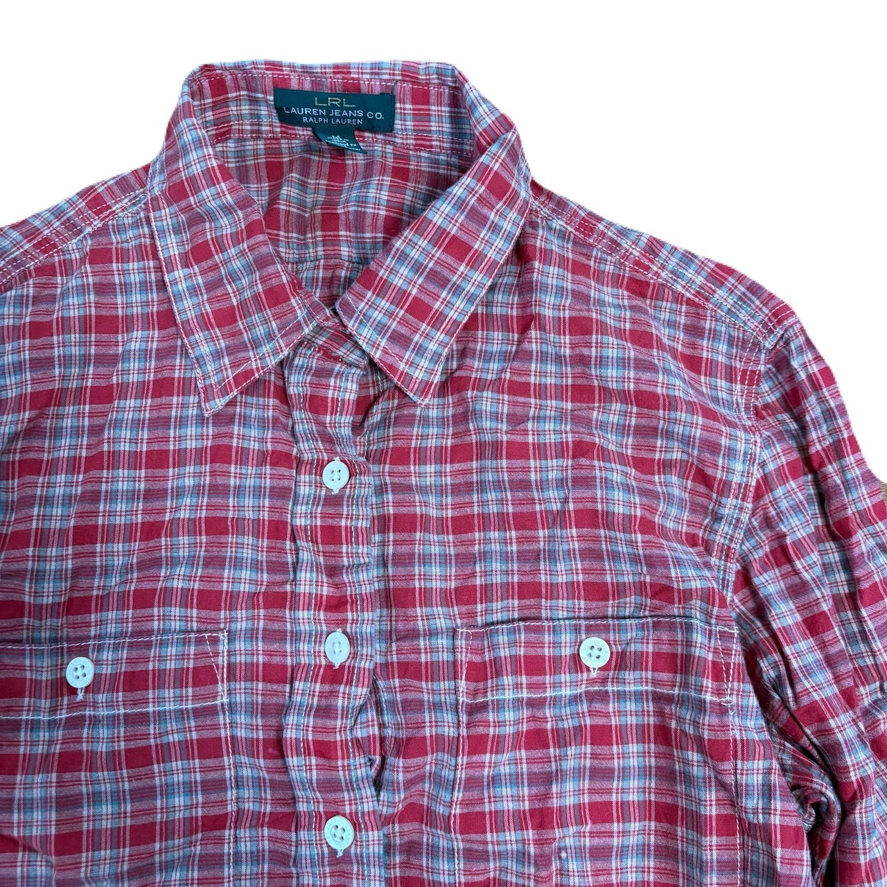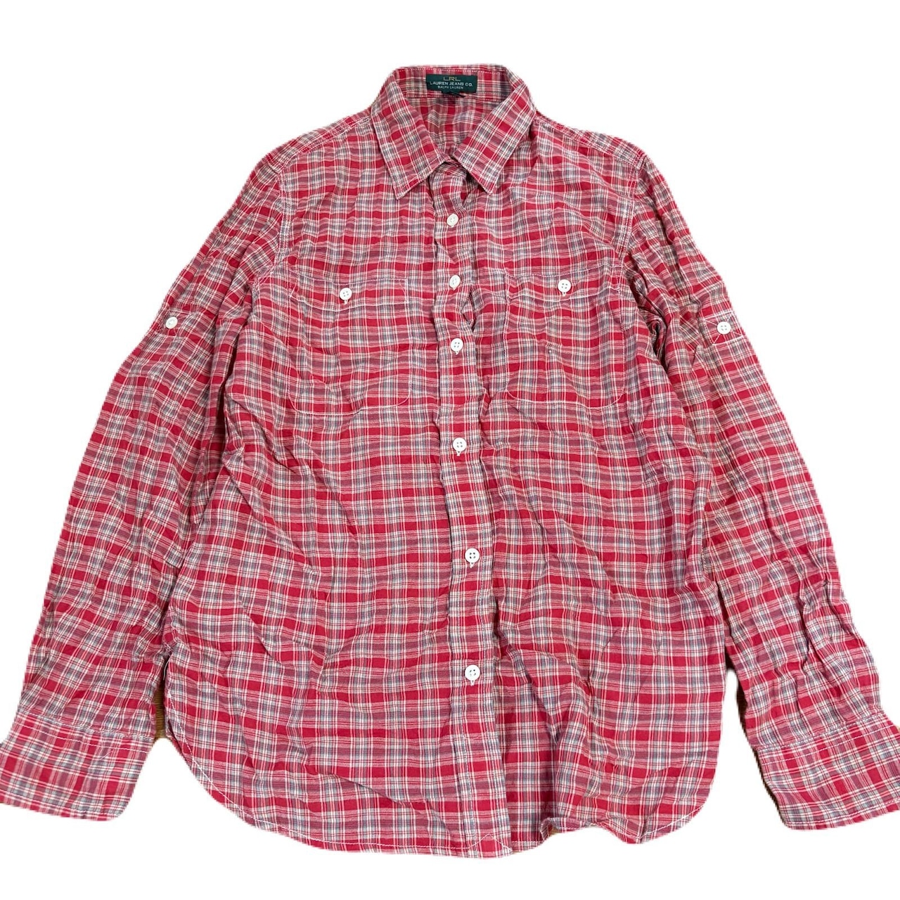 LRL RALPH LAUREN JEANS 長袖 シャツ Mサイズ タータンチェック レッド レディース US古着 ラルフローレン