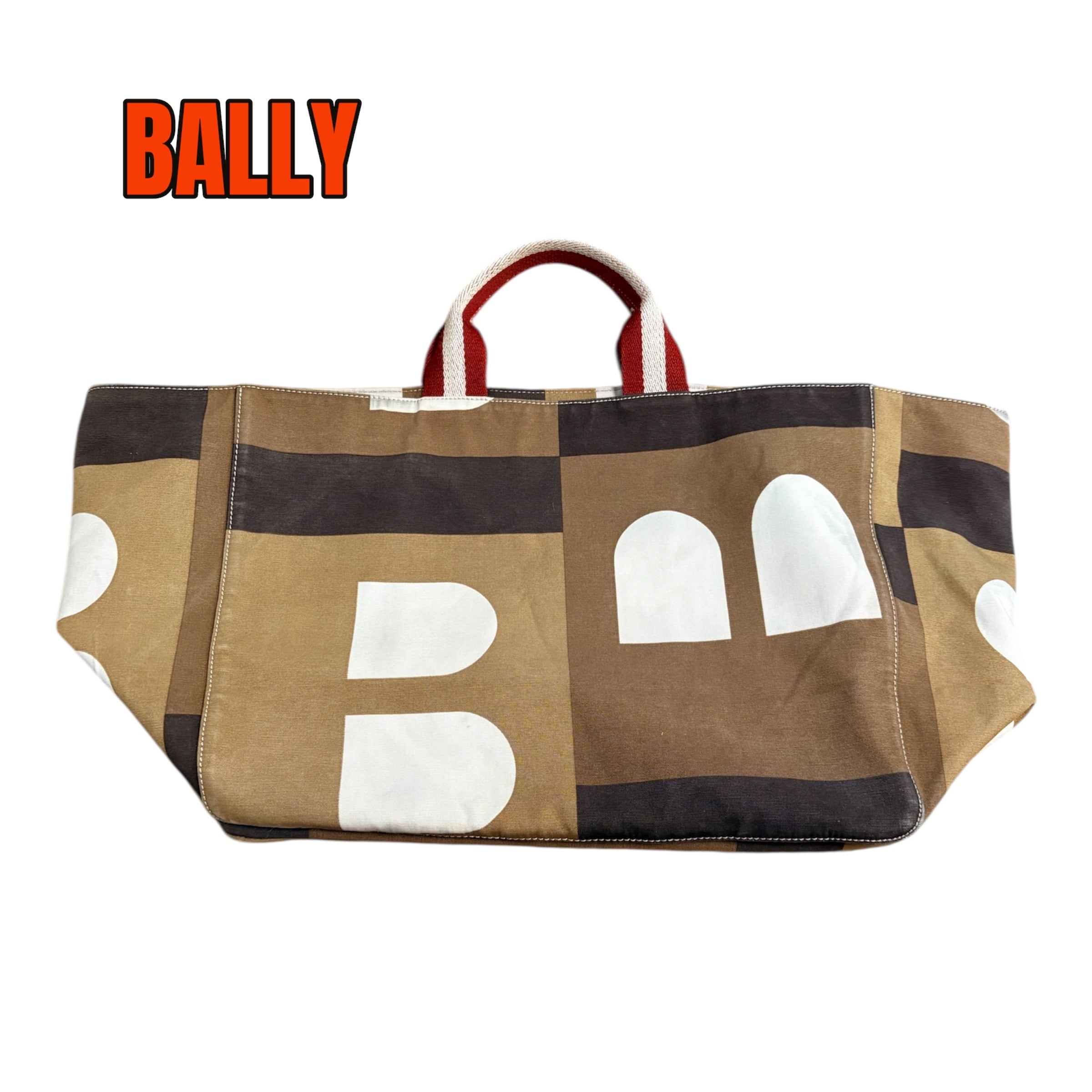 BALLY トートバッグ ビジーB Bロゴ ビッグサイズ イタリア製 ブラウン キャンバス