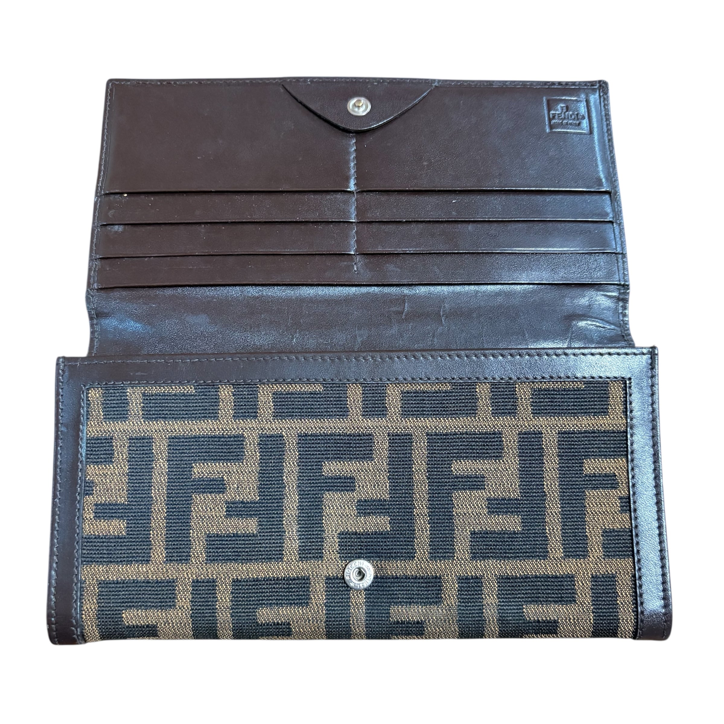 フェンディ 長財布 二つ折り財布 ブラウン ズッカ柄 総柄 イタリア製