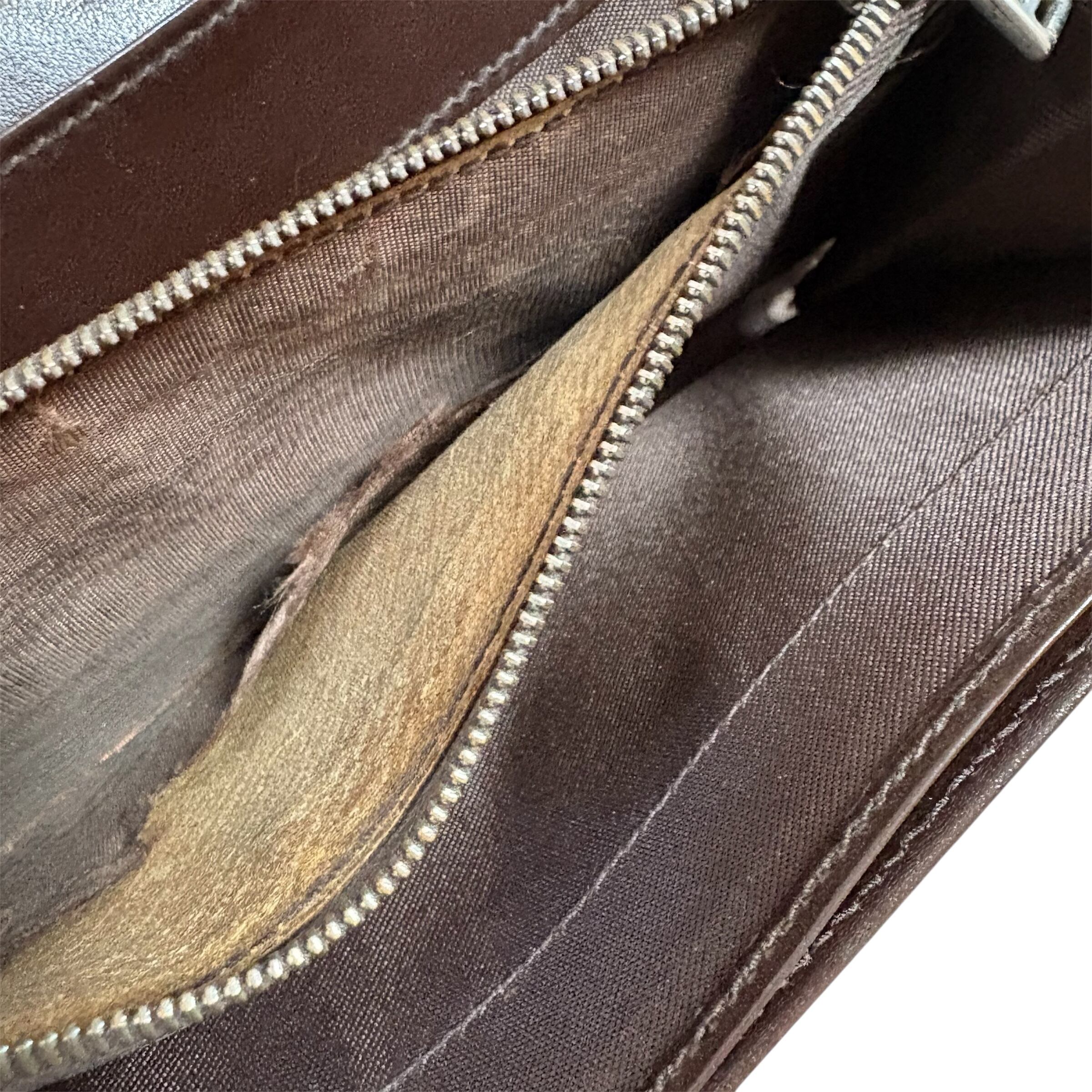 小銭入れ内側の布が剥がれています。