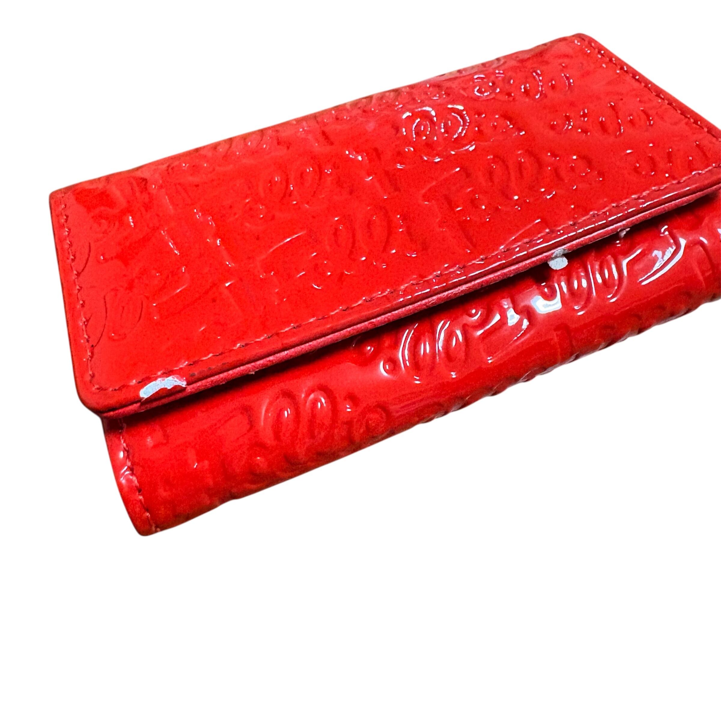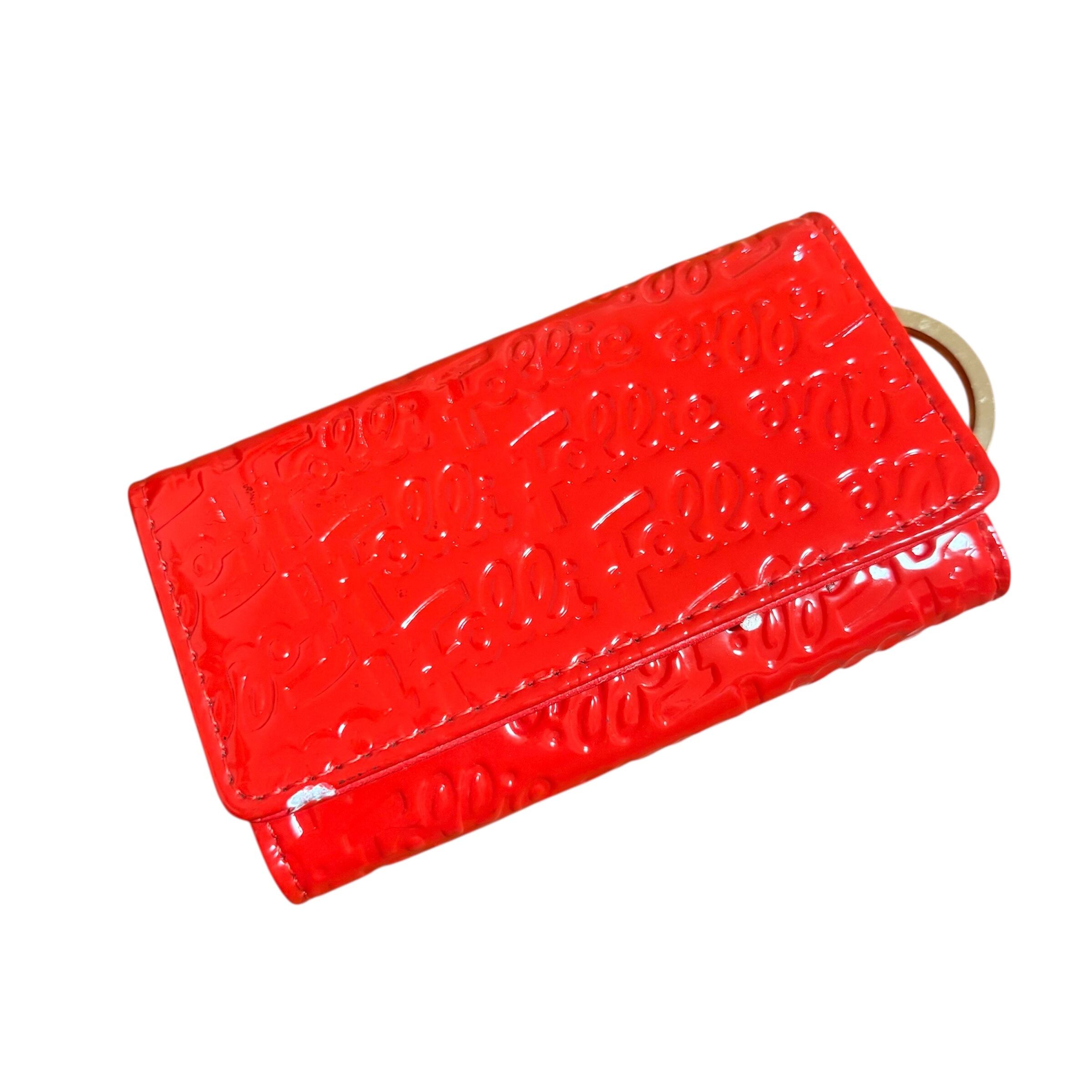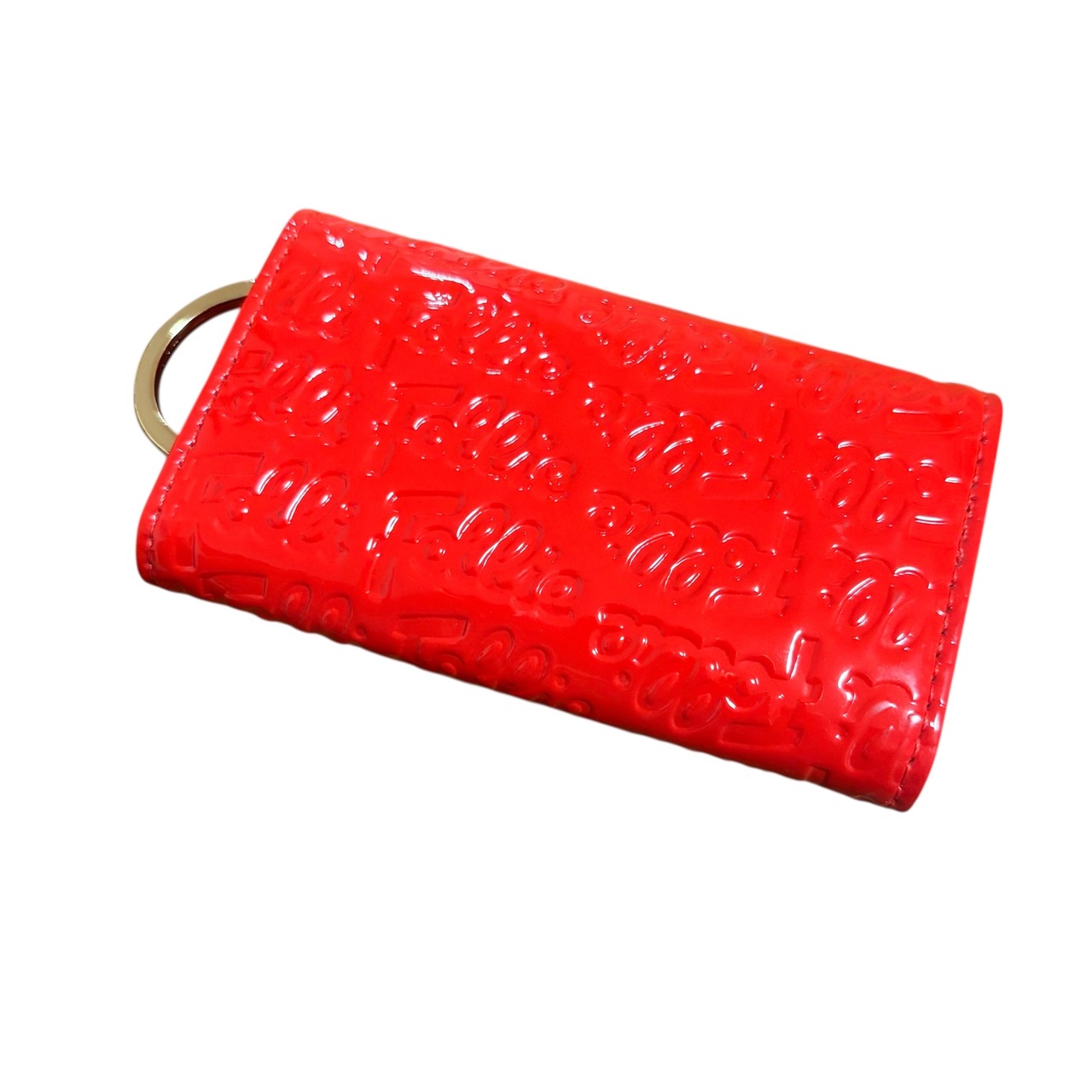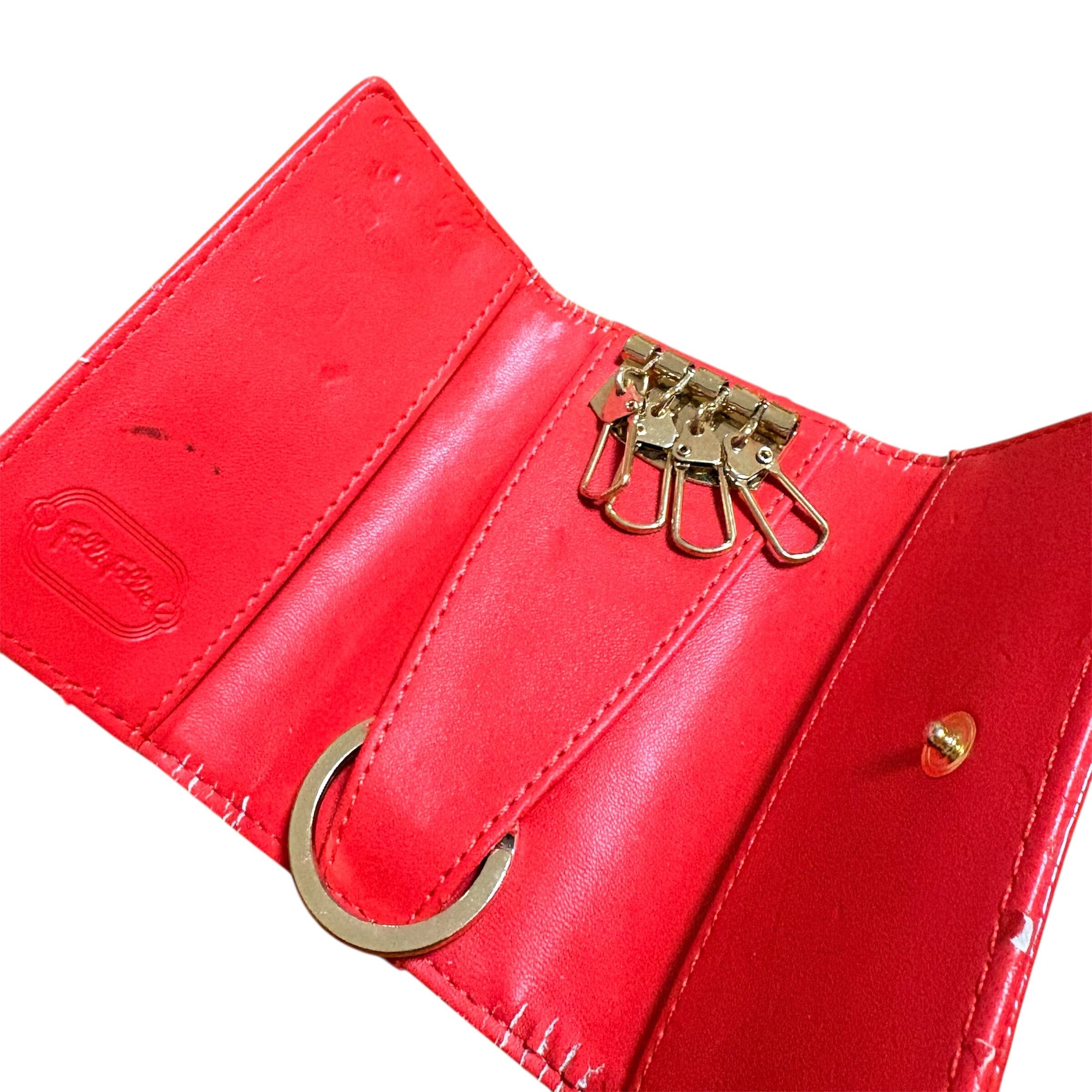 フォリフォリ キーケース エナメル 赤 総柄 四角