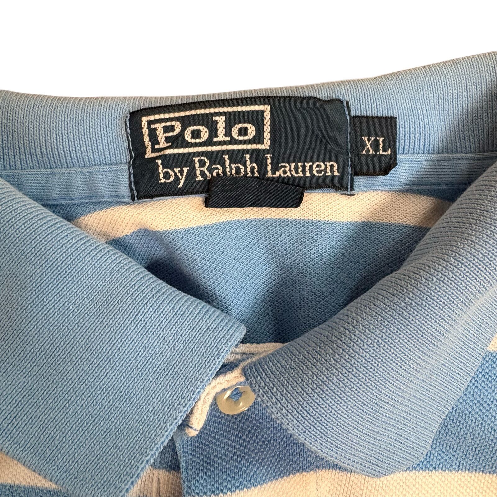 ポロバイラルフローレン ポロシャツ XLサイズ 水色 ボーダー スリランカ製 US古着